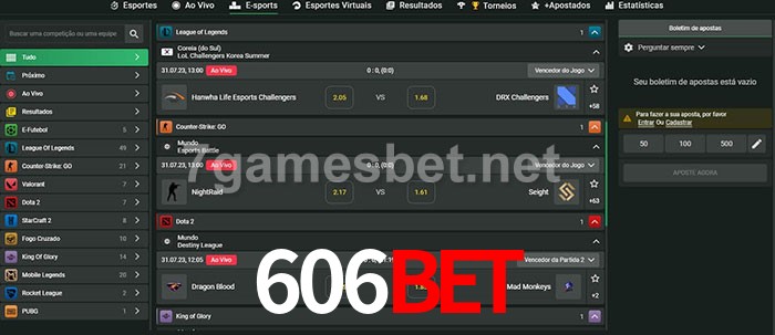 O 606bet oferece uma grande seleção de opções de apostas em e-sports com probabilidades competitivas